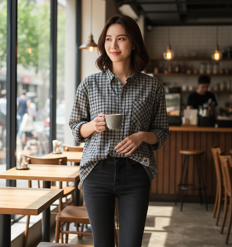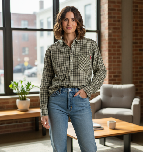 پیراهن چهارخانه زنانه کرمیسبز مدل لانگ آستین بلند – استایل کژوال و شهری