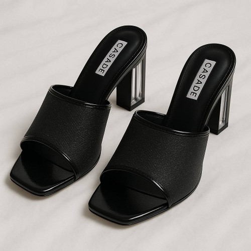 صندل زنانه پاشنهبلند جلو باز مشکی مدل مینیمال – پاشنه شیشهای شیک