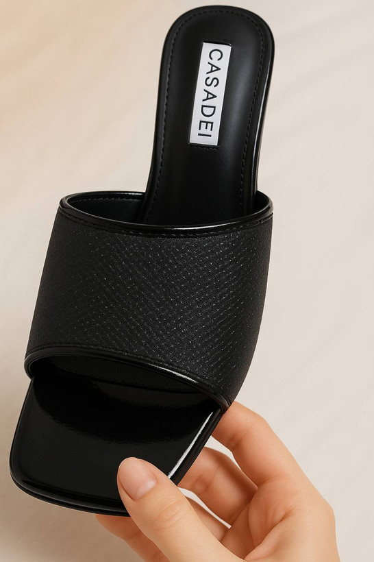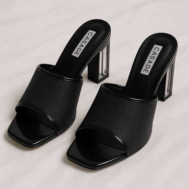 صندل زنانه پاشنه‌بلند جلو باز مشکی مدل مینیمال – پاشنه شیشه‌ای شیک
