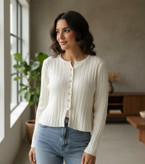 بافت زنانه یقهگرد دکمهمرواریدی، یکی از جذابترین مدلهای کژوال و نیمهرسمی برای فصل پاییز، زمستان و روزهای خنک است. این بافت با طراحی کشباف ریز، استایلی ظریف و کاملاً خوشفرم ایجاد میکند و روی بدن بسیار شیک مینشیند. جنس نرم، لطیف و سبک این بافت باعث میشود در طول روز احساس راحتی کامل داشته باشید دکمههای مرواریدی جلوهای شیک، زنانه و کلاسیک به این بافت داده و آن را مناسب مهمانیهای دوستانه، قرارهای روزمره و حتی محیط کار کرده است. تنخور جذب و مرتب این مدل باعث میشود بهراحتی با شلوار جین، شلوار پارچهای یا دامن ست شود.این بافت در دو رنگ روشن (شیری و گلبهی) بسیار کاربردی عرضه میشود و بهراحتی با تمام آیتمهای کمد لباس هماهنگ میشود. طراحی ساده اما فوقالعاده ظریف، این مدل را به یکی از پرفروشترین و محبوبترین گزینهها تبدیل کرده است. اگر به دنبال بافتی شیک، سبک و راحت هستید، این مدل انتخابی ایدهآل است﮼ دکمه های بافت تزیینی میباشد