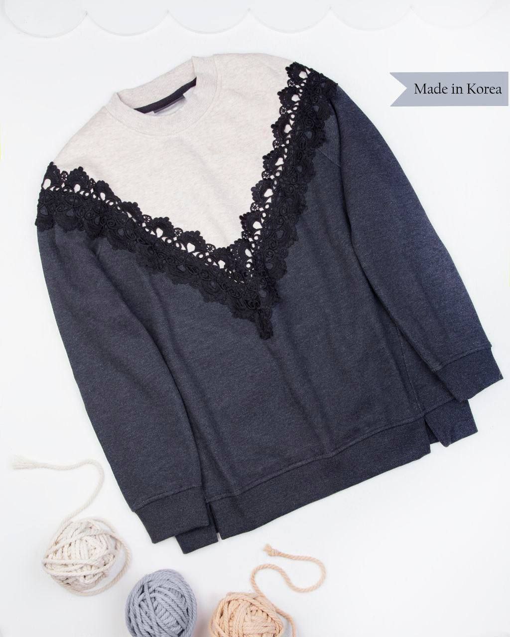 بلوز گرم زنانه یقه گیپور دوخت اصل کره جنوبی